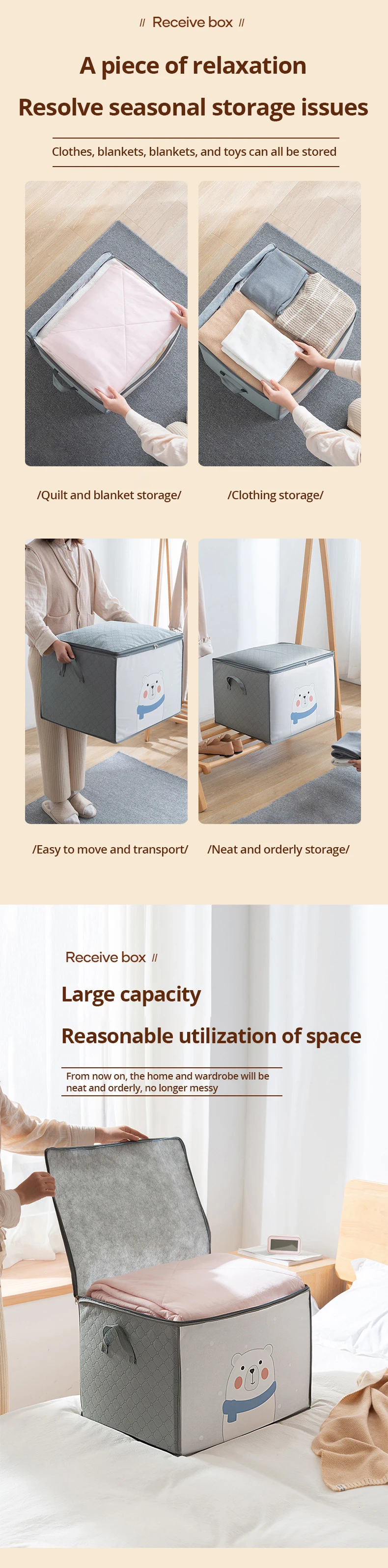 【Multi functional and applicable】Capable of storing blankets, cotton jackets, children's toys, sweaters, etc