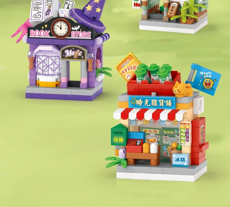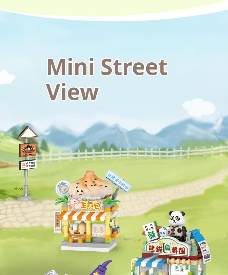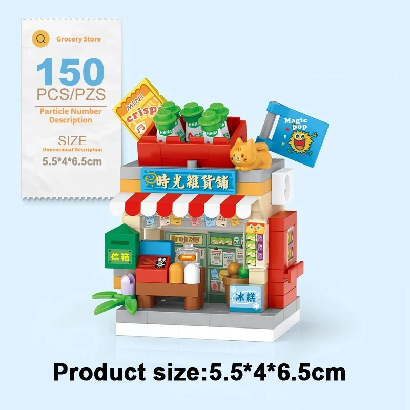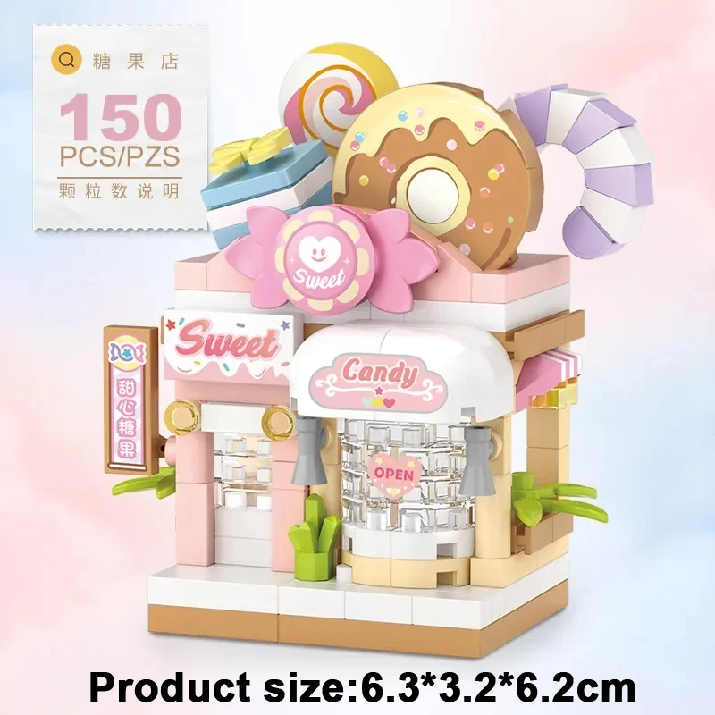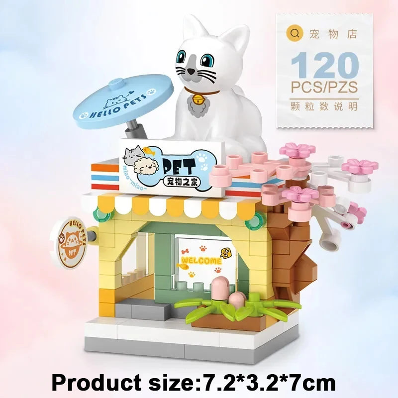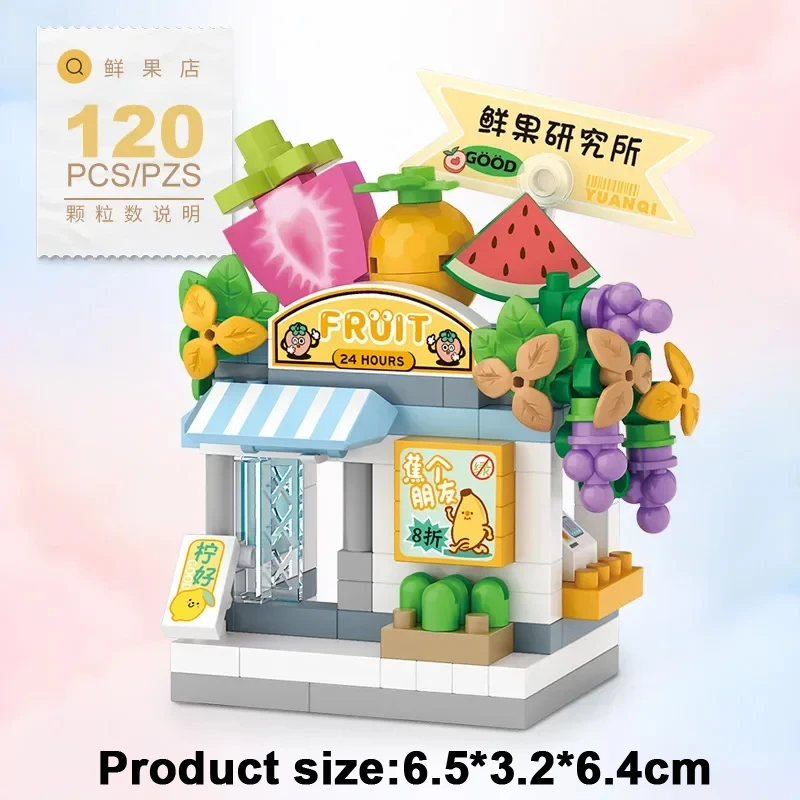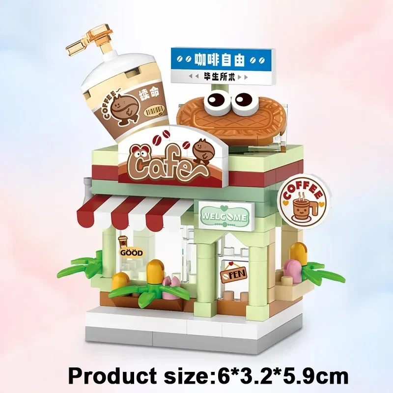 Restaurant Dessert Coffee Pet Fruit Store Street View Food House Building Blocks Kit Girls Bricks Model Kids Toy Boy Child Gifts